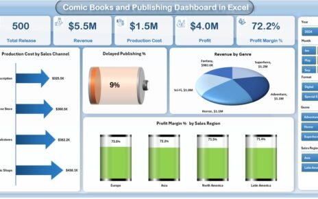 This dashboard works by combining structured data input sheets with automated calculations, pivot tables, and dynamic visuals. Because Excel remains flexible and widely used, teams adopt the dashboard quickly.