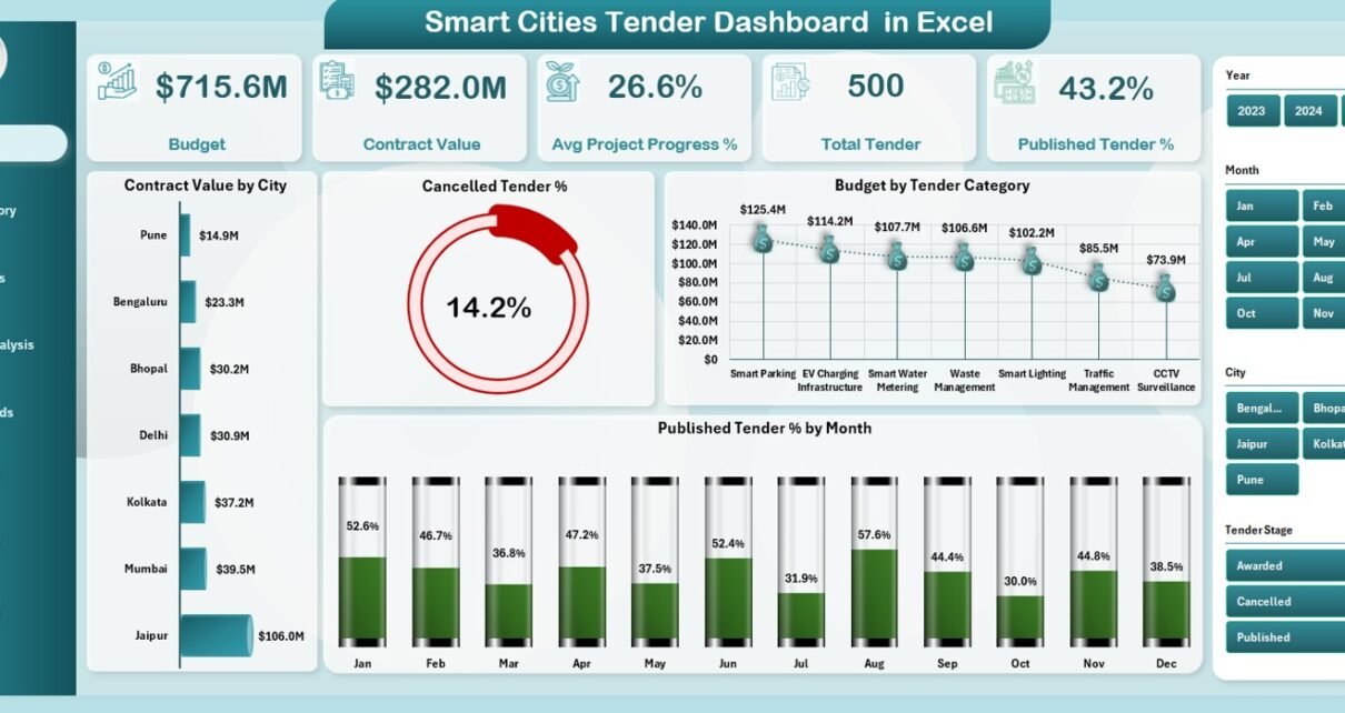 That is exactly why the Smart Cities Tender Dashboard in Excel becomes a powerful and practical solution.
