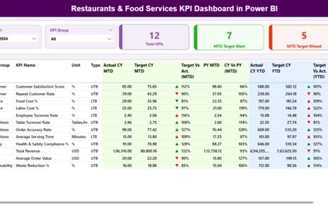 Month and KPI Group Slicer: A slicer at the top allows users to select the specific month and KPI group, ensuring that they can filter the data based on their specific needs.