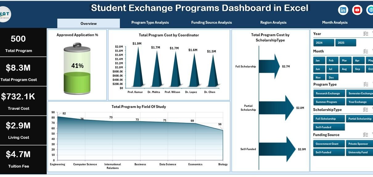 Student exchange programs play a vital role in global education. However, managing multiple programs without structured analytics creates inefficiency and confusion. The Student Exchange Programs Dashboard in Excel provides a practical and powerful solution that transforms raw data into meaningful insights.