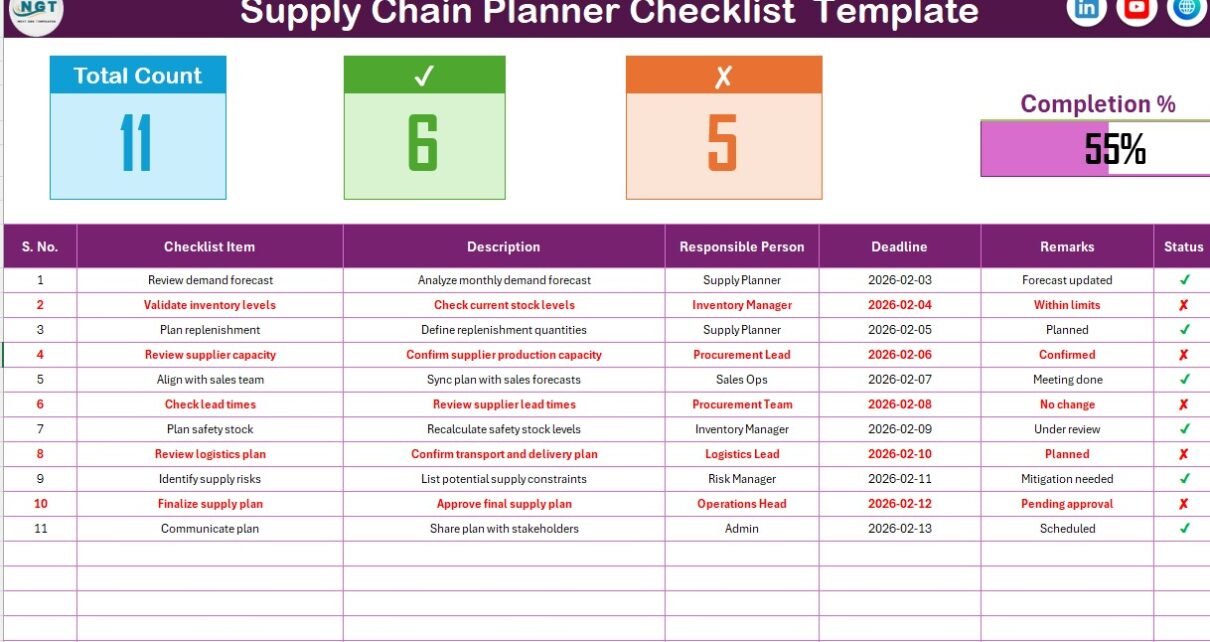 A Supply Chain Planner Checklist in Excel helps because it: