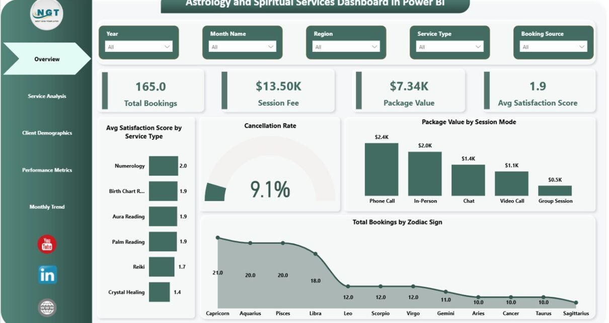 Astrology and Spiritual Services Dashboard in Power BI