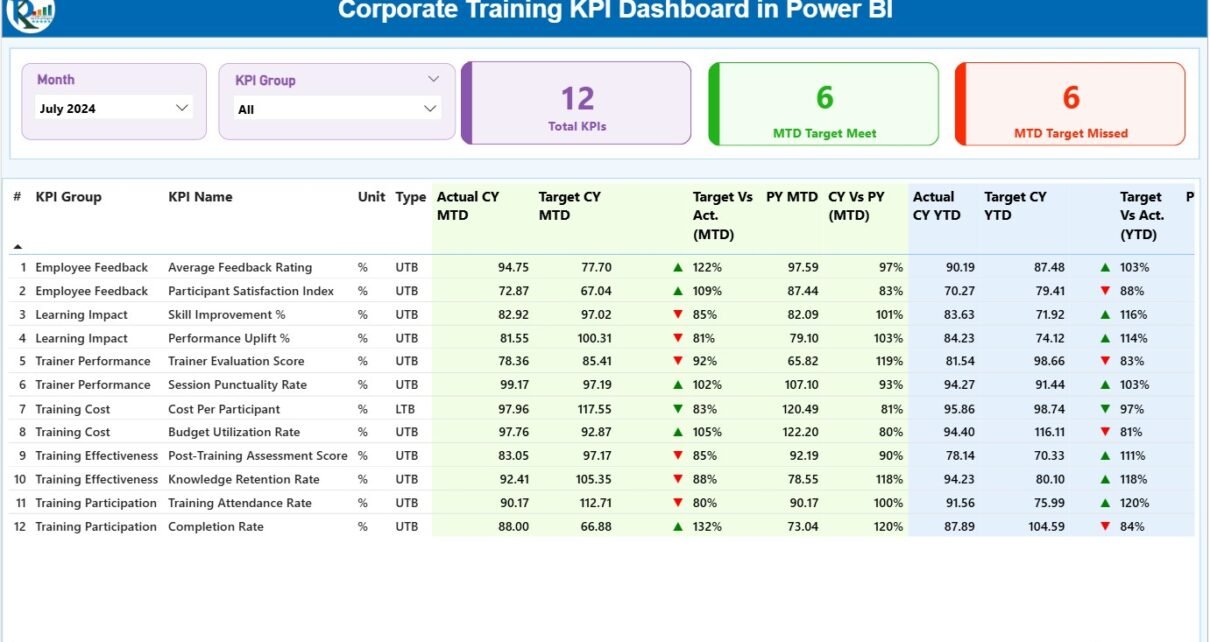 Corporate Training KPI Dashboard in Power BI