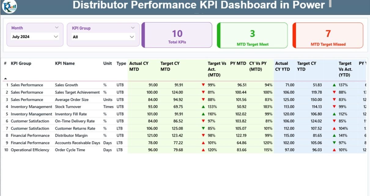 Distributor Performance KPI Dashboard in Power BI