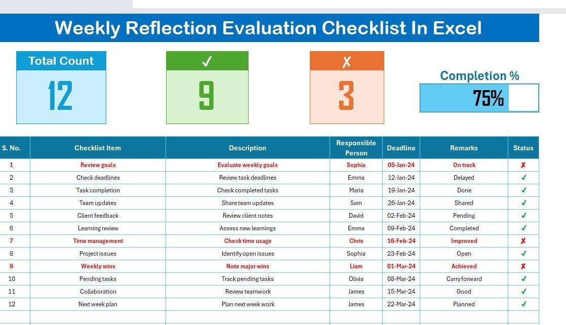 PKComments Off on Weekly Reflection Evaluation Checklist in Excel