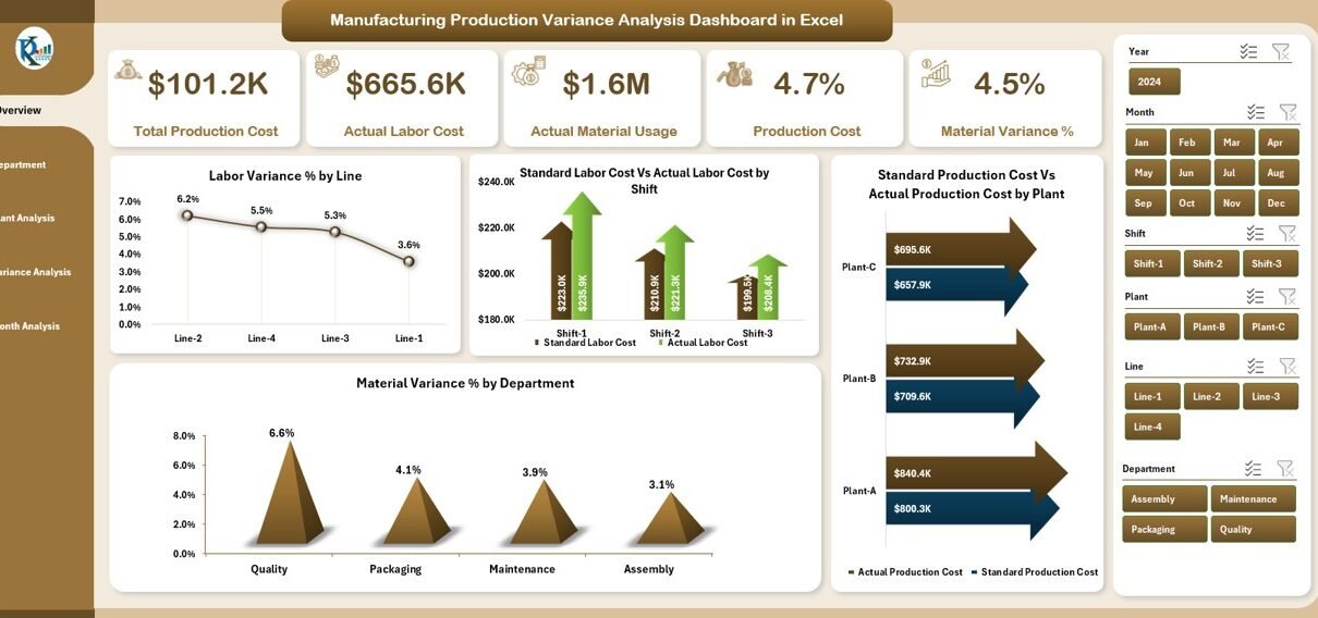 Manufacturing Production Variance Analysis Dashboard in Excel
