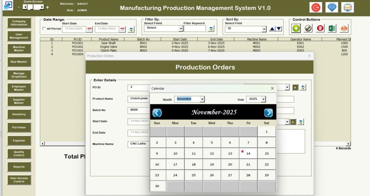 The Manufacturing Production Management System V1.0 solves this problem. It helps teams manage production using a fully automated Excel- and VBA-based tool. The interface looks clean, the navigation feels smooth,