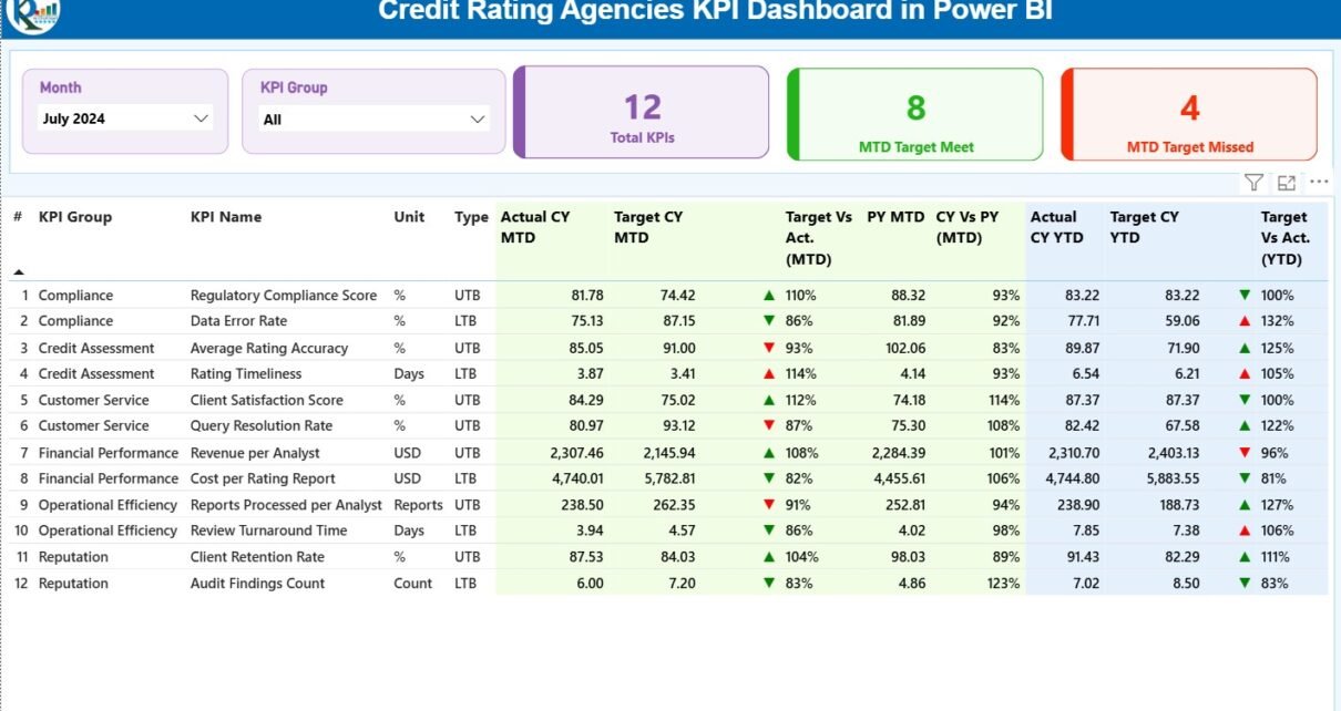 Credit Rating Agencies KPI Dashboard in Power BI
