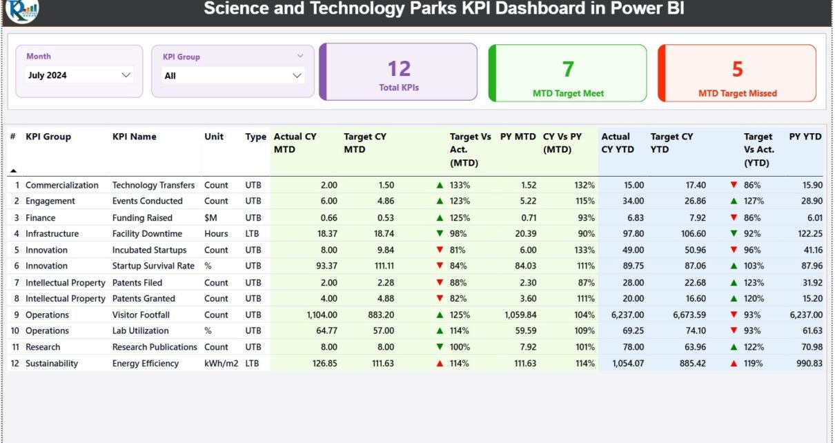 Science and Technology Parks KPI Dashboard in Power BI
