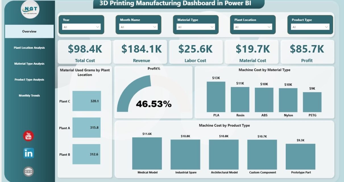 3D Printing Manufacturing Dashboard in Power BI