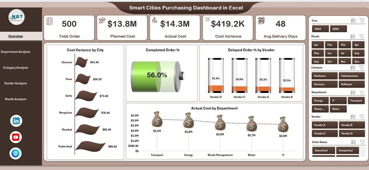 Smart Cities Procurement Dashboard in Excel