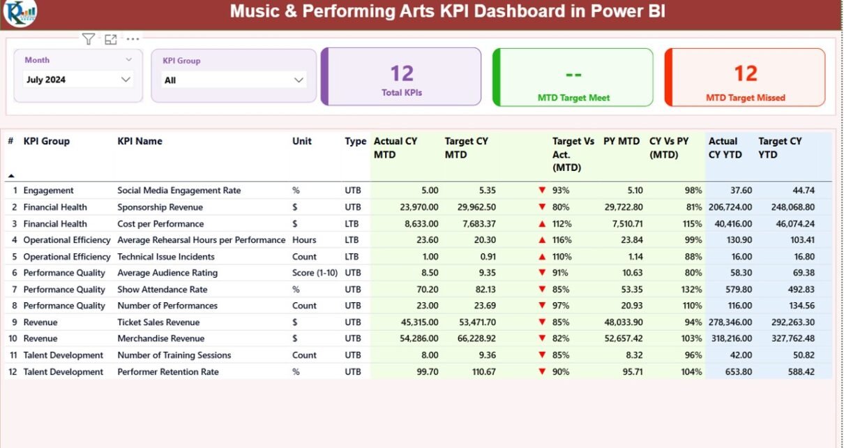 Music & Performing Arts KPI Dashboard in Power BI
