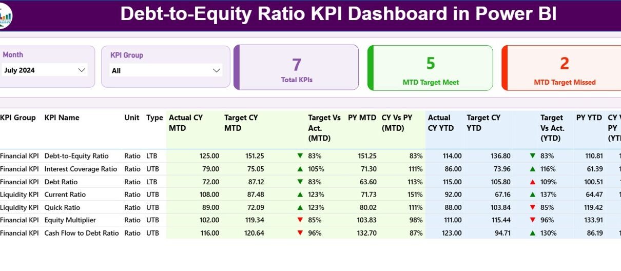 Debt-to-Equity Ratio KPI Dashboard in Power BI