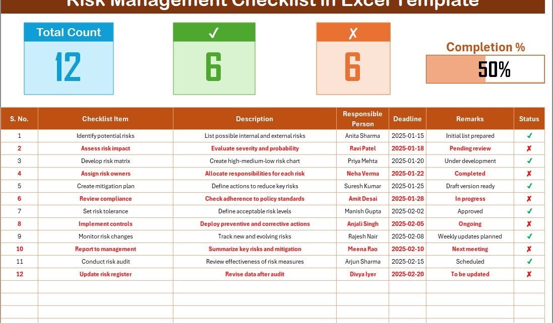 Risk Management Checklist in Excel