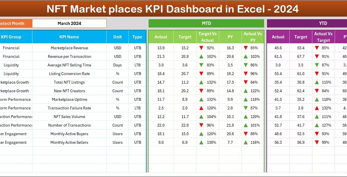 NFT Marketplaces KPI Dashboard in Excel
