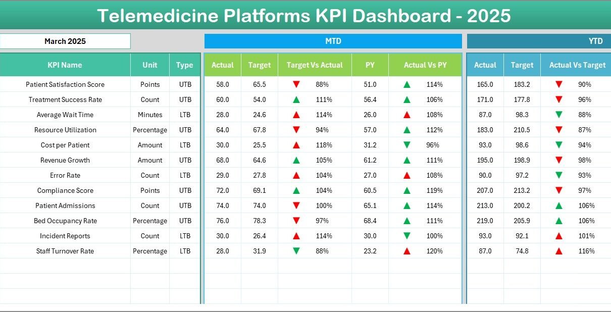 Telemedicine Platforms KPI Dashboard