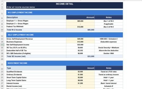 Tax Planning Worksheet Template in Excel