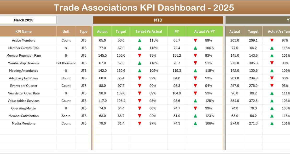 Trade Associations KPI Dashboard in Excel