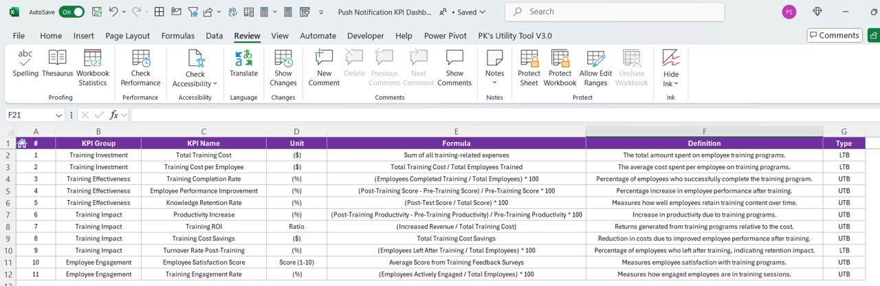 Training ROI KPI Dashboard in Excel 7