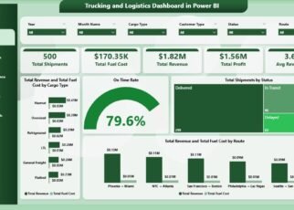 Trucking and Logistics Dashboard in Excel is a powerful, pivot-driven analytics workbook designed to help fleet managers, trucking company owners, logistics coordinators, and supply chain professionals monitor every critical aspect of their trucking operations. With 5 dedicated dashboard pages, dynamic KPI cards, built-in slicers, and automatic pivot chart refresh, this Excel template transforms raw trucking data into actionable visual insights that drive smarter decisions across routes, drivers, trucks, and finances.