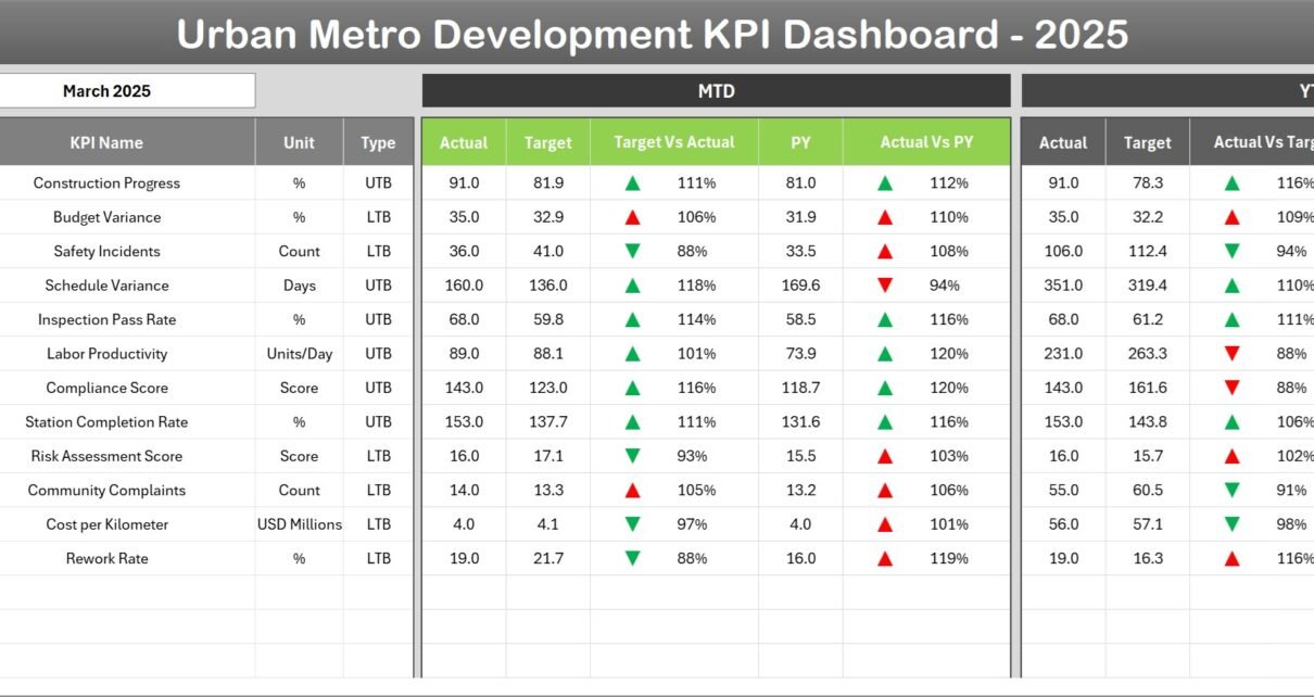 What Is an Urban Metro Development KPI Dashboard in Excel?
