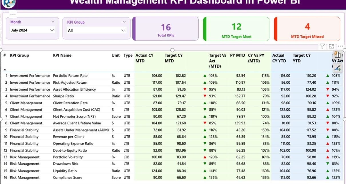 A Wealth Management KPI Dashboard in Power BI helps firms: