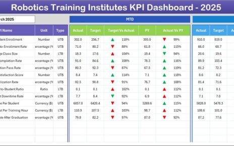 Introduction The Robotics Training Institutes KPI Dashboard is a comprehensive and ready-to-use template designed to help managers and decision-makers track,