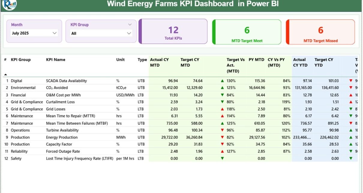What a Wind Energy KPI Dashboard in Power BI is