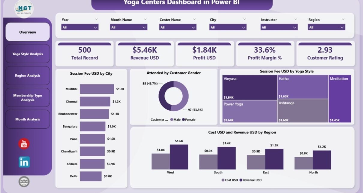 How Does a Yoga Centres Dashboard in Power BI Work?